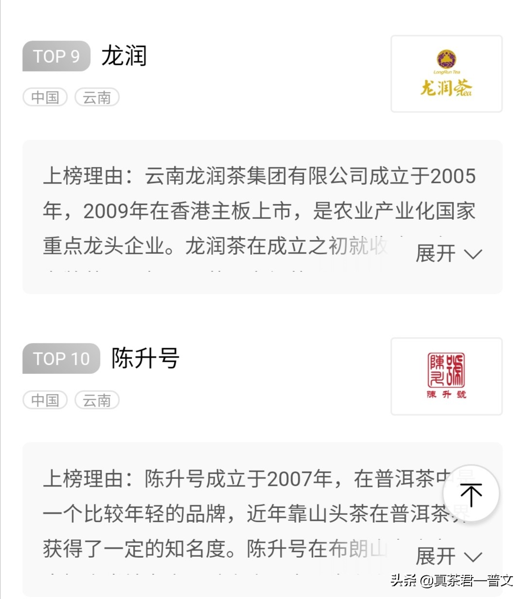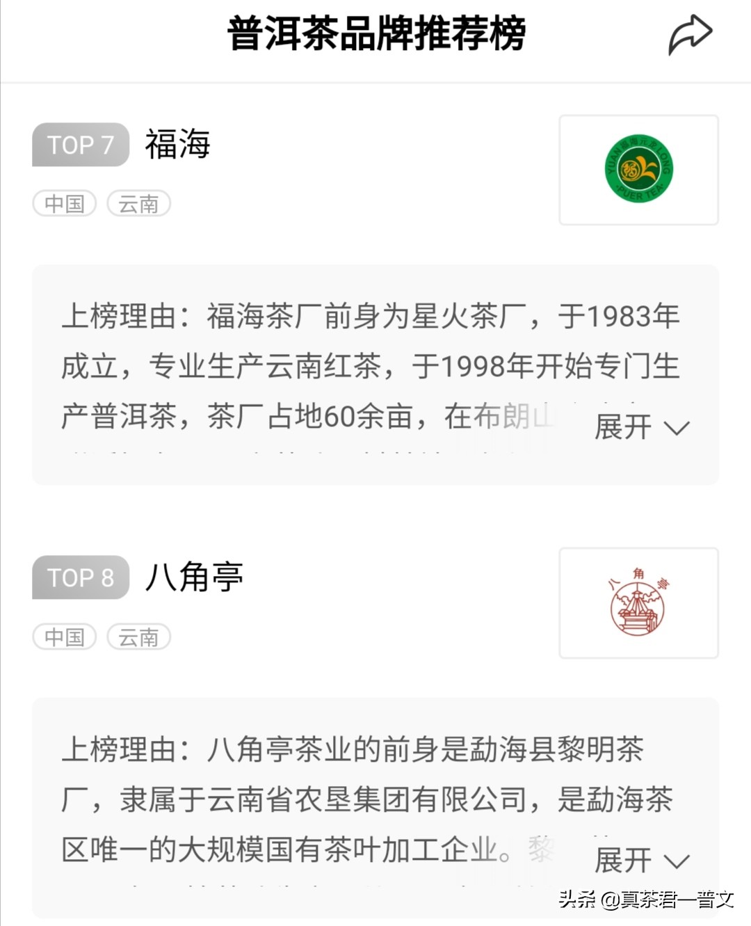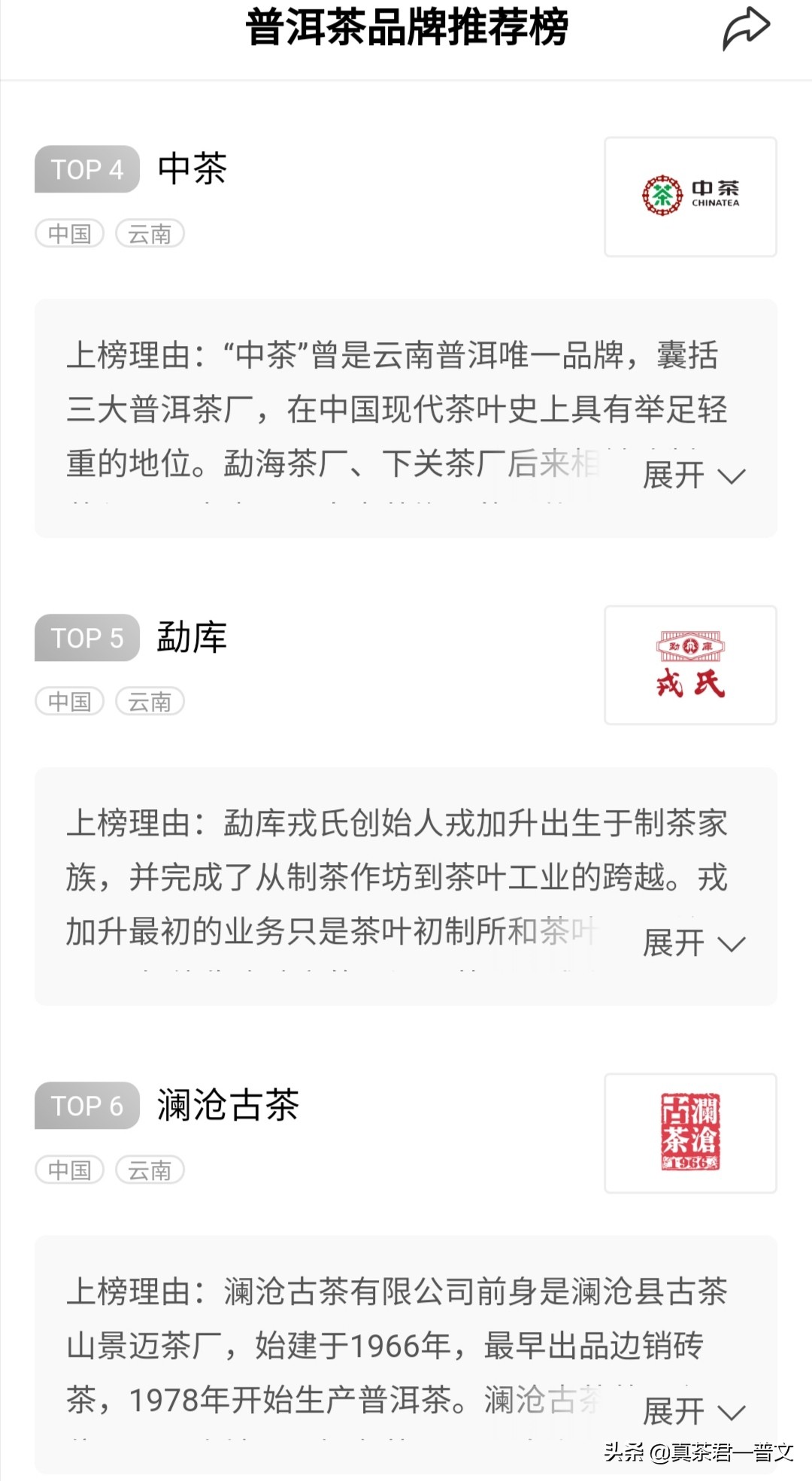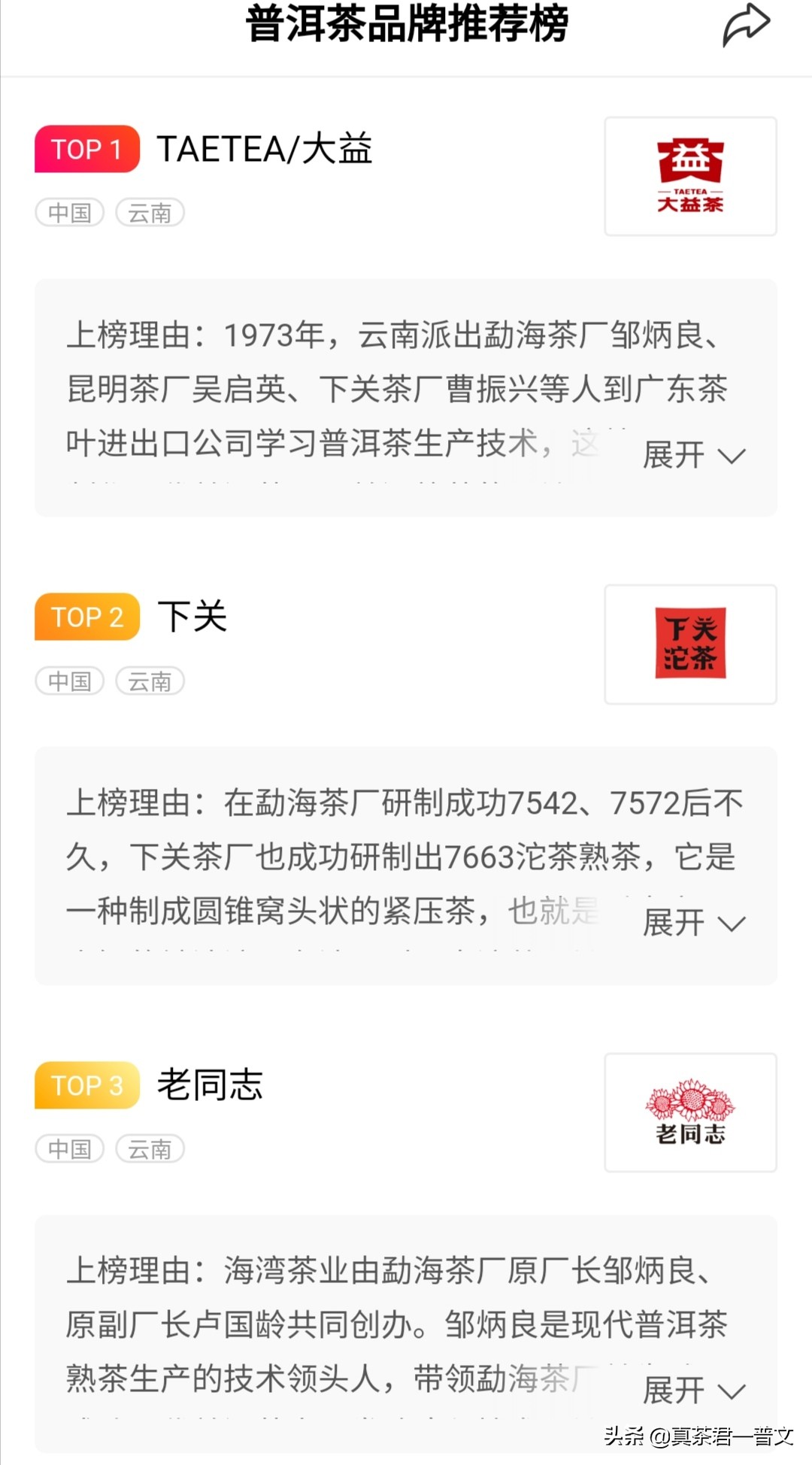 普文先给大家罗列一组网络推荐普洱茶10大标杆企业,但是个人觉得作为普洱茶茶山经营者及老茶客,喝完这些茶,只想说一句,卖的最好,我喝我自己茶山的算了。(看图)